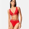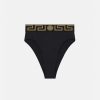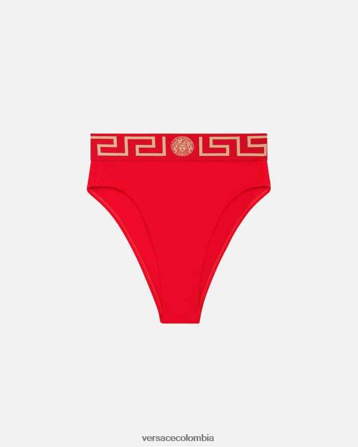 mujer braguitas de bikini de talle alto con borde con Greca Versace rojo 2RP40F1154 ropa interior y ropa de playa