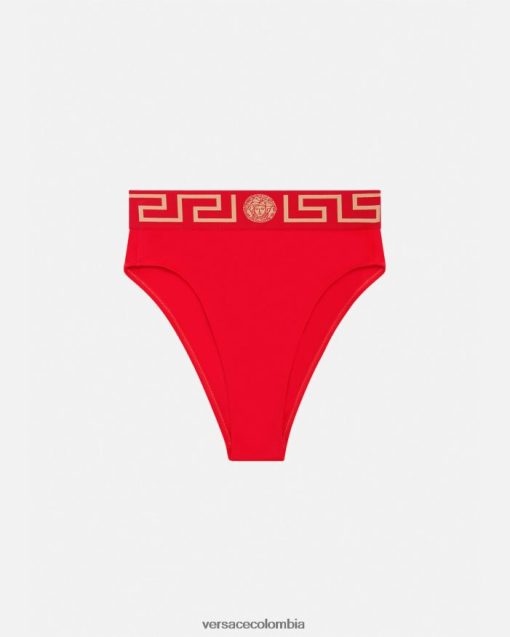 mujer braguitas de bikini de talle alto con borde con Greca Versace rojo 2RP40F1154 ropa interior y ropa de playa