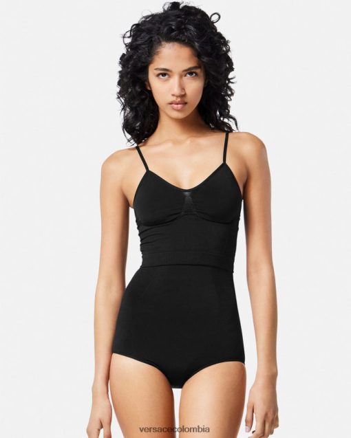 Estas braguitas esculpidas de cintura alta están confeccionadas con un tejido elástico y presentan un motivo de medusa en la parte posterior. Usada debajo de conjuntos de Versace, la prenda interior moldeadora levanta y define la forma con un ligero acolchado.