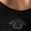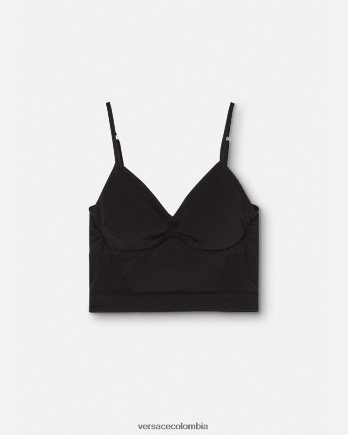 Este bralette esculpidor está confeccionado con un tejido elástico y presenta un motivo de medusa en la parte posterior. Usada debajo de conjuntos de Versace, la prenda interior moldeadora levanta y define la forma.