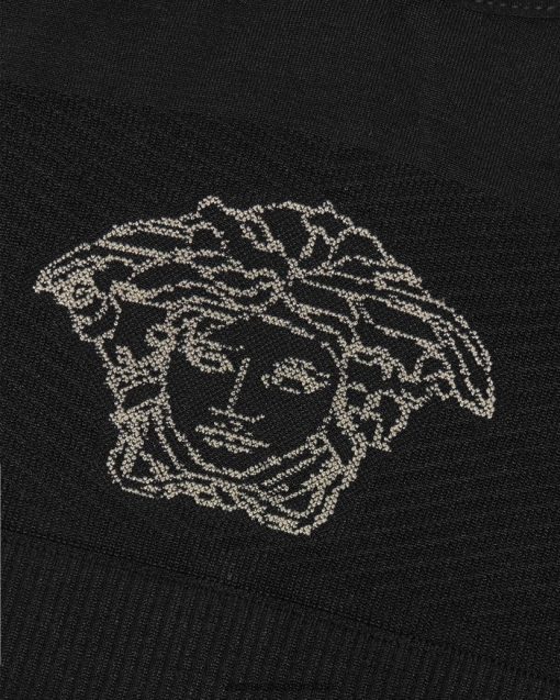 Este bralette esculpidor está confeccionado con un tejido elástico y presenta un motivo de medusa en la parte posterior. Usada debajo de conjuntos de Versace, la prenda interior moldeadora levanta y define la forma.