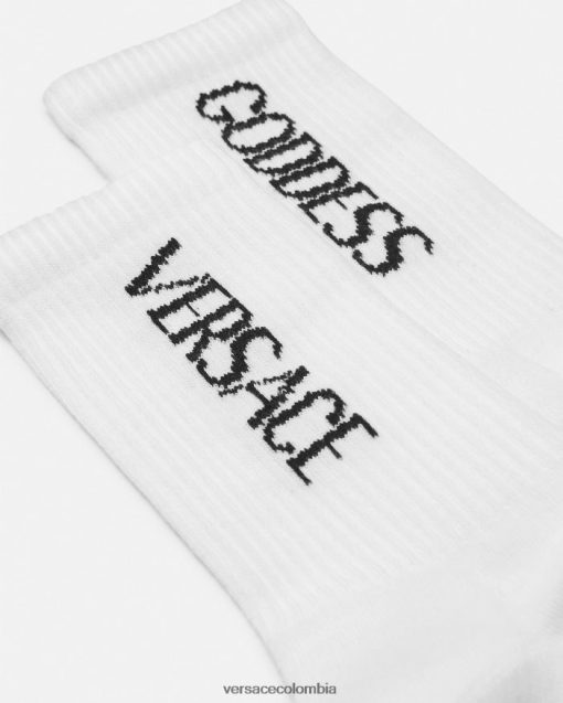 Estos calcetines hasta los tobillos están confeccionados en una mezcla de algodón con el logo de la diosa Versace acanalado.
