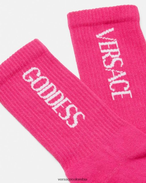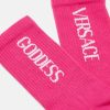 Estos calcetines hasta los tobillos están confeccionados en una mezcla de algodón con el logo de la diosa Versace acanalado.