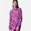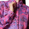 Una camisa fluida de manga larga con el logo de alta costura estampado por toda la prenda.