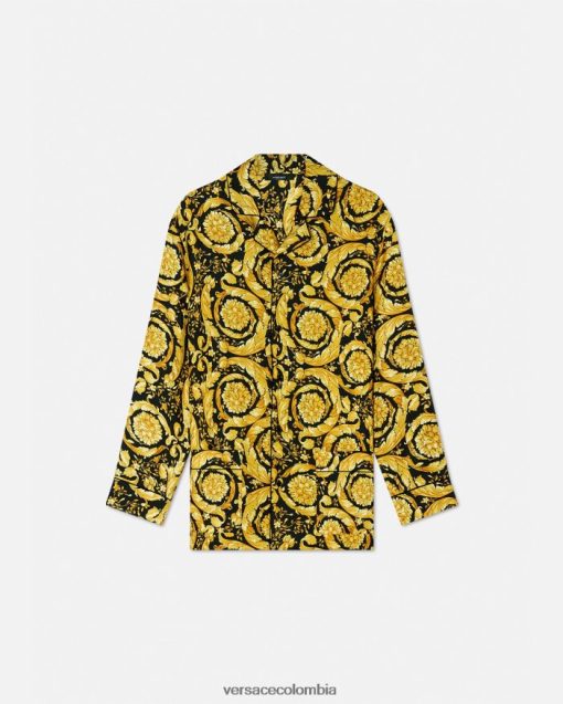 Esta camisa de pijama, confeccionada en sarga de seda, presenta un estampado barroco por toda la prenda. Para disfrutar del máximo lujo en ropa de dormir, combine la camisa ultrasuave con pantalones de pijama a juego.
