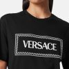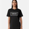 Una camiseta de algodón de manga corta con el logo de Versace bordado en la parte delantera.