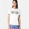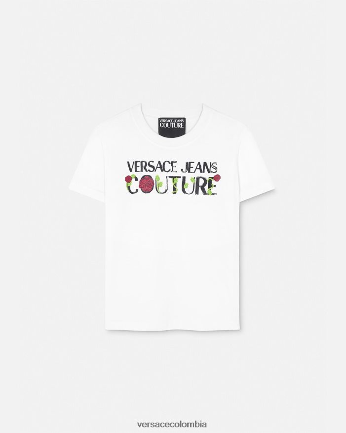 una camiseta de algodón de manga corta con estampado del logo de rosas.