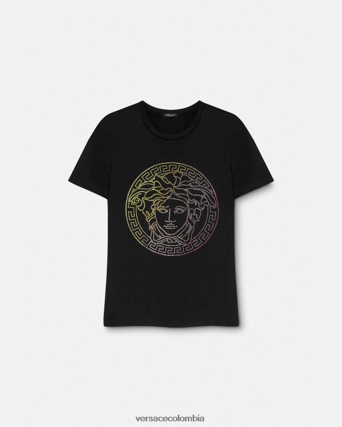 Confeccionada en suave algodón, esta camiseta de manga corta presenta un motivo central de medusa completamente enriquecido con cristales multicolores.