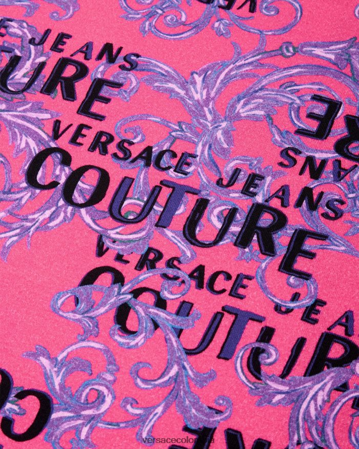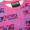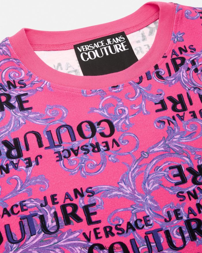 Esta camiseta de manga corta de algodón de corte entallado presenta un logotipo de alta costura estampado por toda la prenda.