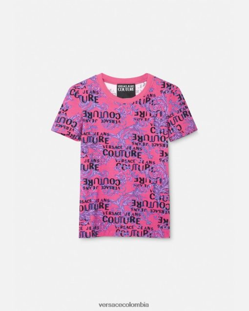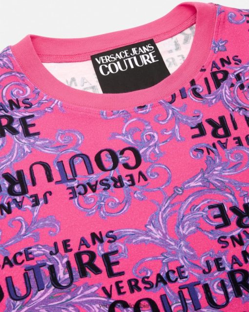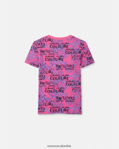 Esta camiseta de manga corta de algodón de corte entallado presenta un logotipo de alta costura estampado por toda la prenda.
