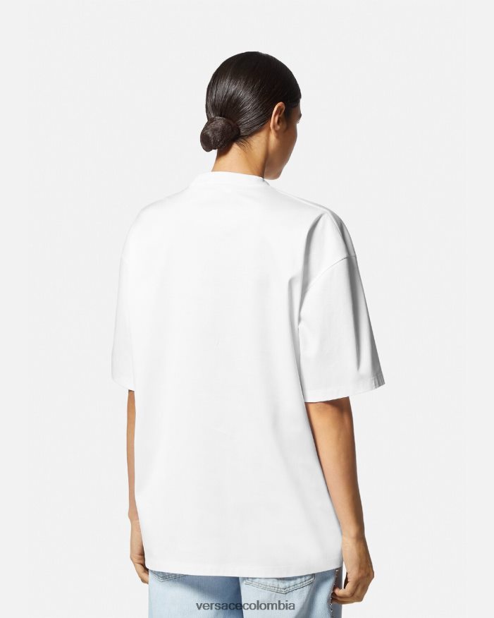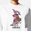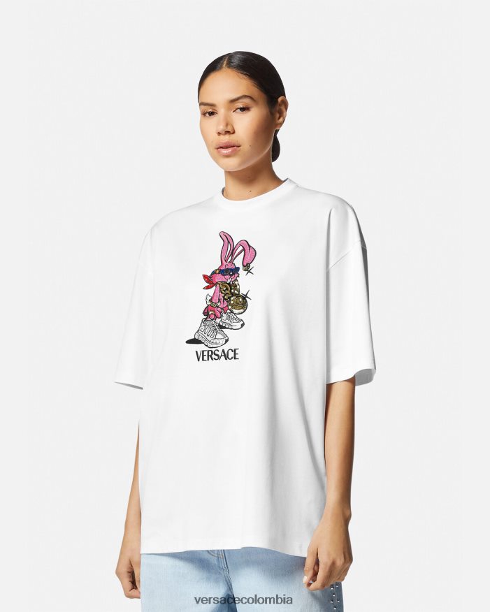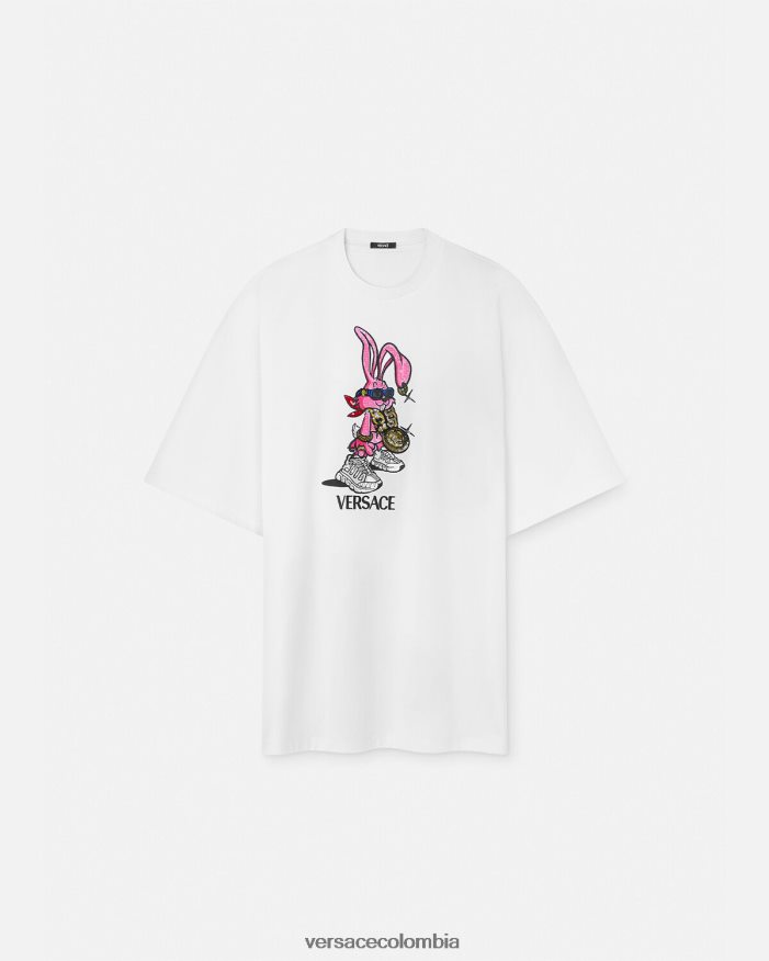 Celebrando el año del conejo, esta camiseta extragrande de algodón presenta un conejito biggie bordado y con lentejuelas que lleva gafas de sol medusa biggie, una cadena de medusa y trigrecas.