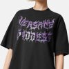 una camiseta de algodón de manga corta con un corte extragrande y un logo llameante de “versace diosa” en la parte delantera para darle un toque grunge de versace.