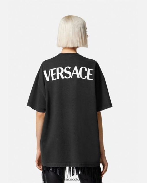 una camiseta de algodón de manga corta con un corte extragrande y un logo llameante de “versace diosa” en la parte delantera para darle un toque grunge de versace.