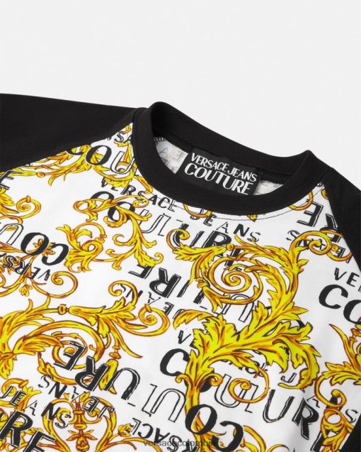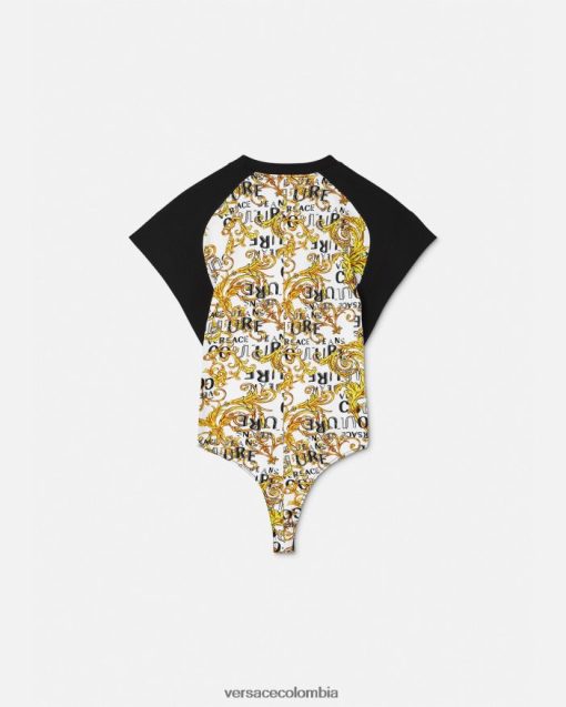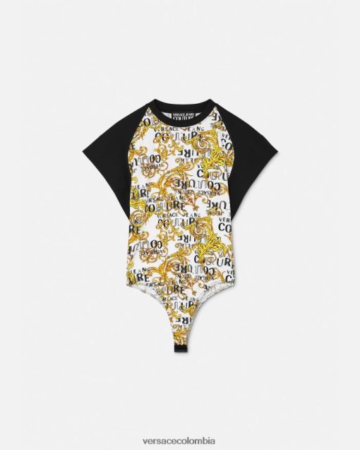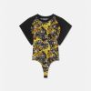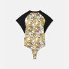 Esta camiseta tipo body de manga corta está confeccionada en punto de algodón y presenta un estampado de logotipo de alta costura en la parte delantera y trasera con mangas anchas.