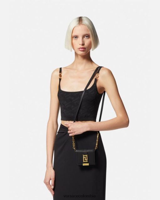 Confeccionada en cuero, esta cartera plegable con Greca Goddess está realzada por la cadena Greca con múltiples ranuras internas para tarjetas, un compartimento para billetes y un monedero. El pequeño accesorio cuenta con una correa de cuero y cadena Greca para llevar al cuello o cruzado.