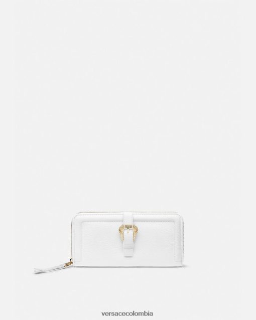 una cartera continental con múltiples compartimentos y una hebilla barroca en la parte delantera.