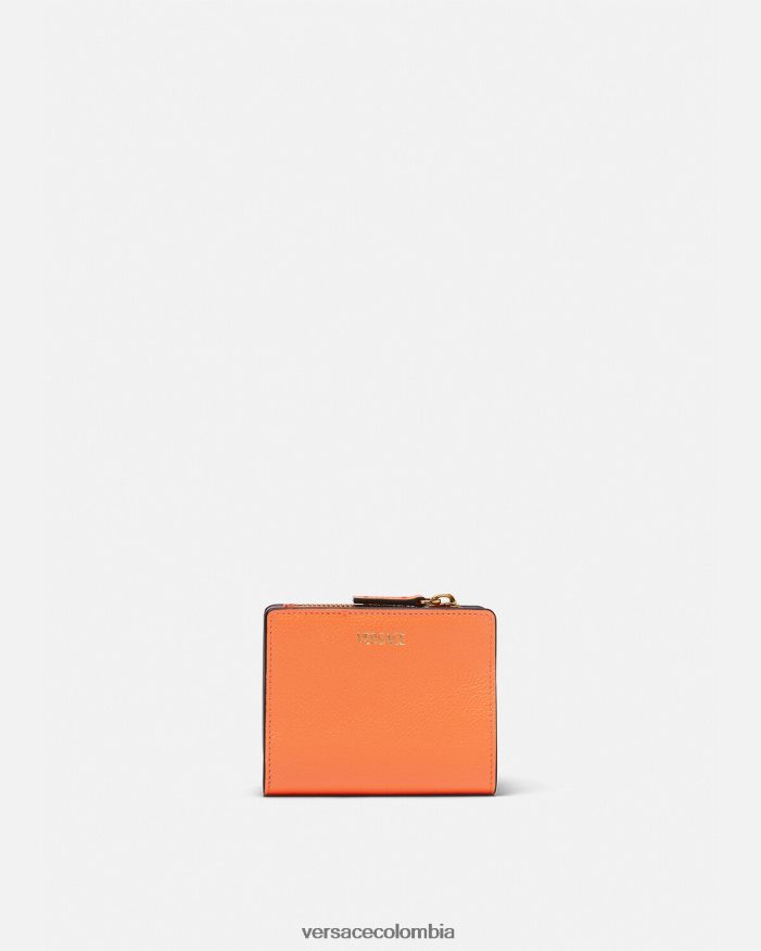 Esta cartera de cuero granulado, que combina perfectamente con los bolsos de La Medusa, presenta detalles metálicos de Medusa característicos y cierres de botones a presión. el interior alberga múltiples ranuras para tarjetas, un monedero con cremallera y un compartimento para billetes.