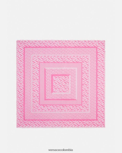Tejido con una mezcla de modal y seda, este suave chal presenta un motivo de La Greca y un borde ligeramente con flecos.