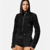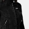 Esta chaqueta vaquera de inspiración motera tiene una silueta entallada y un acabado ligeramente lavado.