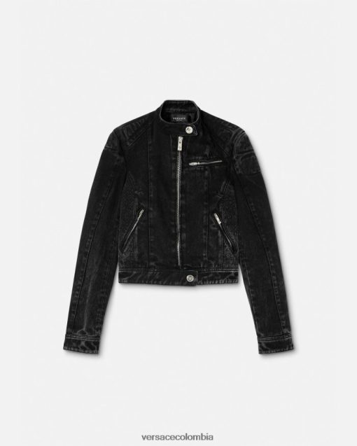 Esta chaqueta vaquera de inspiración motera tiene una silueta entallada y un acabado ligeramente lavado.