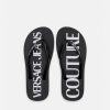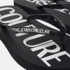 Estas chanclas de goma cuentan con tiras brillantes con logo impreso y plantillas con logo.
