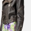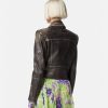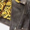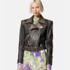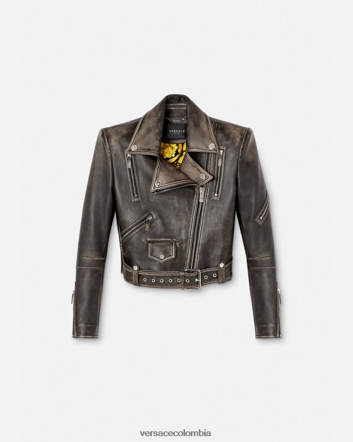 Confeccionada íntegramente en cuero con un acabado cepillado de estilo vintage, esta chaqueta tiene una cremallera diagonal y una cintura con cinturón ajustable. Los detalles metálicos de Medusa y el cálido forro barroco acolchado acentúan el estilo motero.