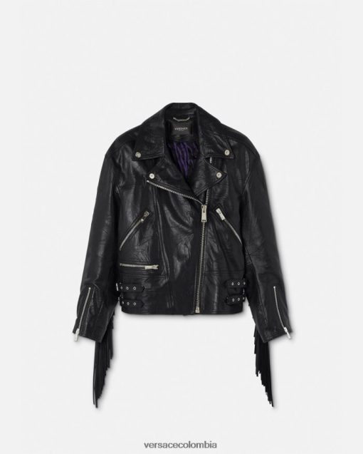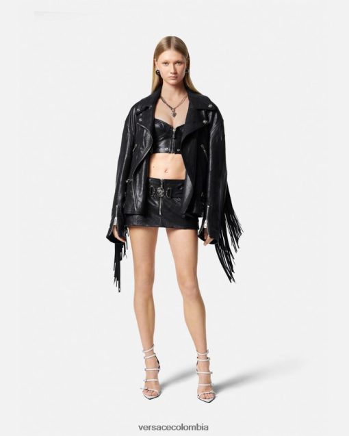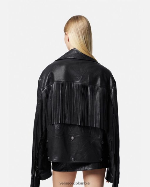mujer chaqueta de cuero con flecos Versace negro 2RP40F101 ropa