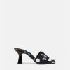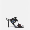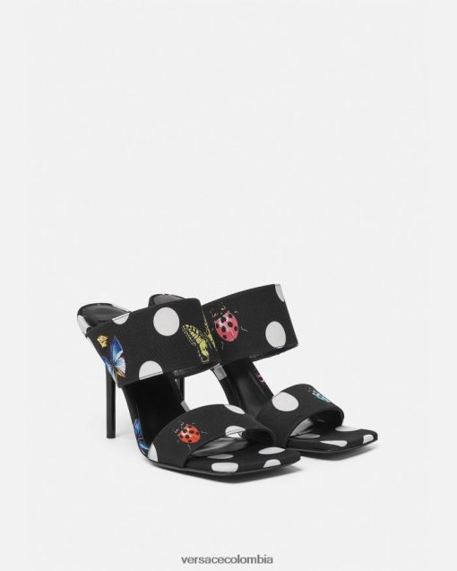 Dua Lipa es la diseñadora invitada de la colección cápsula Dua Lipa x Versace, realizada en colaboración con Donatella Versace. Estas mules de tacón de aguja alto cuentan con un estampado de mariposas y mariquitas de lona con lunares, parte superior con doble tira y herrajes de medusa.