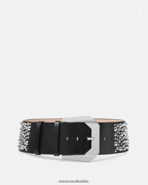 Este cinturón ancho de cuero presenta una hebilla tradicional de Medusa con tachuelas decorativas en todas partes.