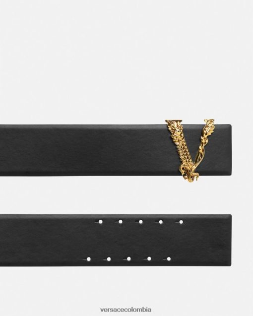 Este cinturón ancho, elaborado en cuero, presenta una V barroca con detalles de hojas de acanto grabadas.