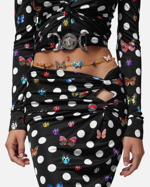 Dua Lipa es la diseñadora invitada de la colección cápsula Dua Lipa x Versace, realizada en colaboración con Donatella Versace. Este cinturón de cadena presenta un motivo de greca con mariposas y mariquitas, y un dije de medusa en un extremo. Cada pieza es única y puede variar ligeramente de la imagen mostrada debido a su calidad aplicada y pintada a mano.