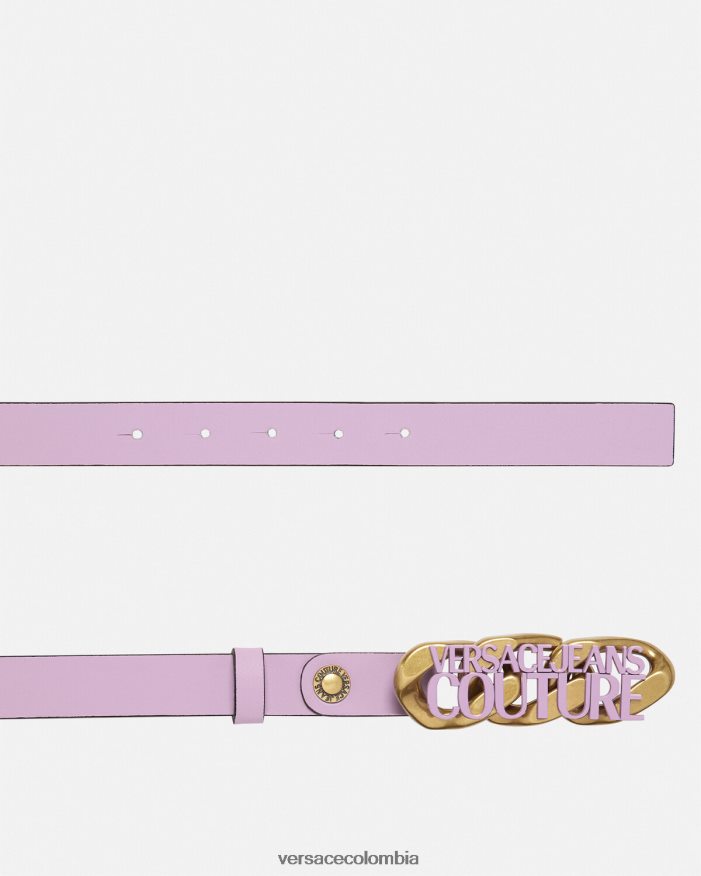 un cinturón de cuero con letras del logo y hebilla de cadena.