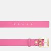 un cinturón de cuero con una hebilla con logo.
