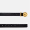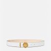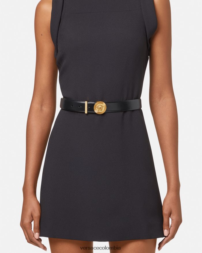 Este cinturón está confeccionado en cuero y cuenta con una hebilla grande de Medusa y una presilla con detalles metálicos.