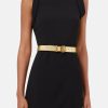 Confeccionado en cuero flexible, este cinturón con tachuelas en el cuello presenta una hebilla grande de Medusa con presilla de metal.