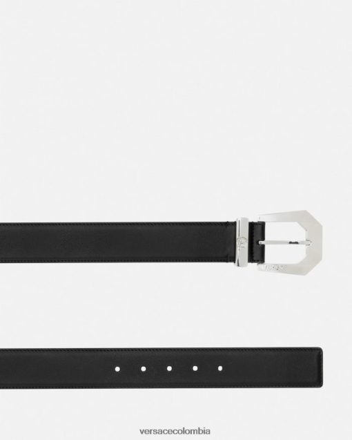 Este cinturón de cuero presenta una hebilla tradicional de Medusa con una presilla con tachuelas de Medusa acentuada.