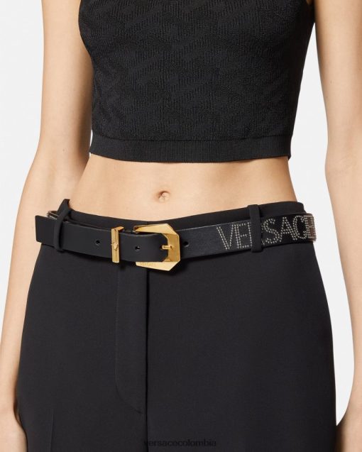 mujer cinturón de cuero con tachuelas Versace negro 2RP40F549 accesorios