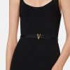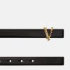 Este cinturón fino confeccionado en cuero presenta una V barroca con detalles de hojas de acanto grabadas.