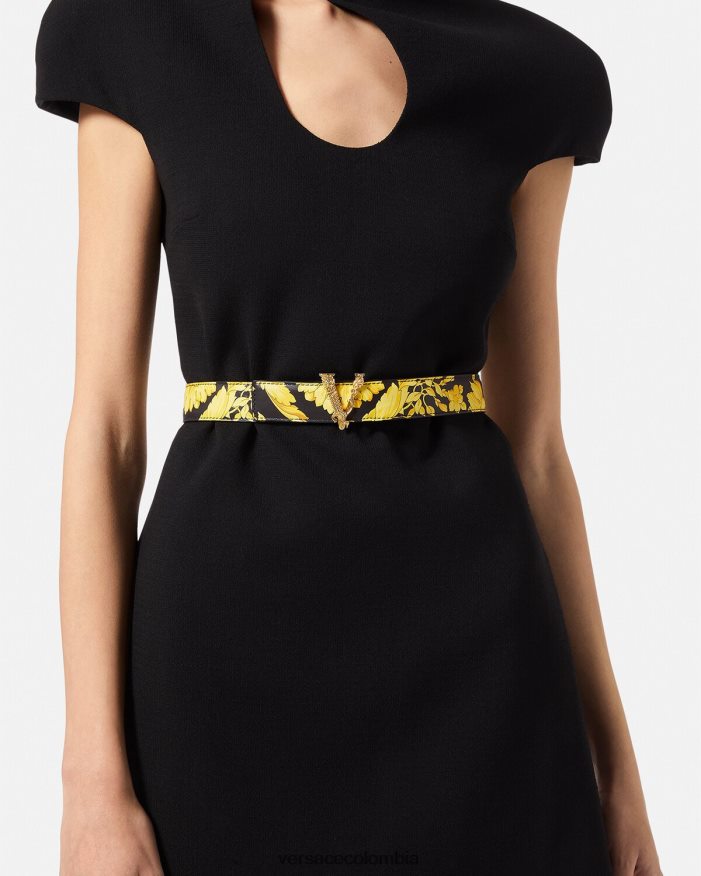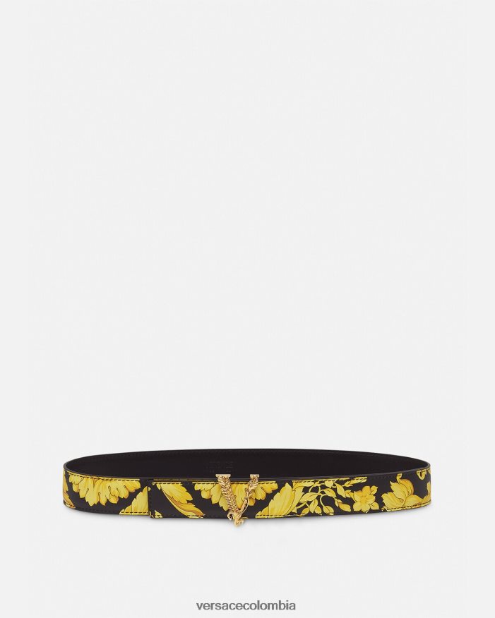 Confeccionado en cuero, este cinturón con estampado barroco presenta una V barroca con detalles de hojas de acanto grabadas.