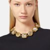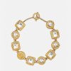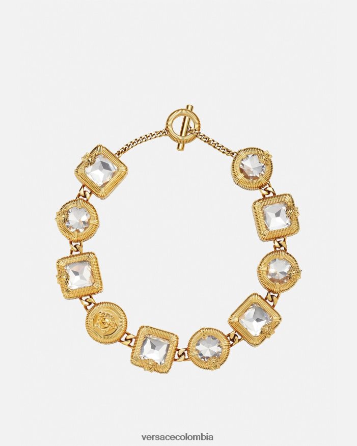 Este collar grueso presenta cristales cuadrados y redondos que se alternan, con un marco de medusa grabado. Ninguno de los productos de joyería de Versace contiene plomo ni níquel. Todos los materiales son hipoalergénicos.