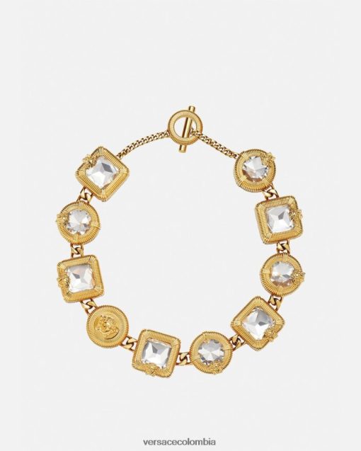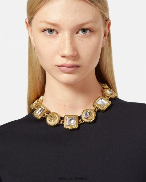 Este collar grueso presenta cristales cuadrados y redondos que se alternan, con un marco de medusa grabado. Ninguno de los productos de joyería de Versace contiene plomo ni níquel. Todos los materiales son hipoalergénicos.