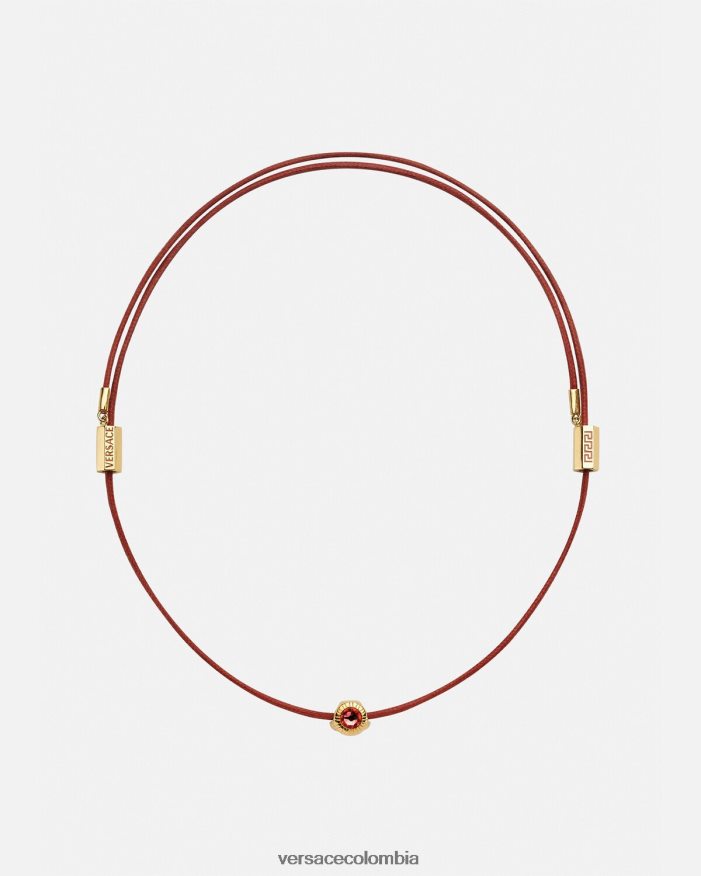 un collar de cordón ajustable realzado por una medusa de doble cara y una tachuela de cristal. Todos los productos de joyería de Versace no contienen plomo ni níquel. Todos los materiales son hipoalergénicos.