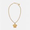 un collar de cadena fina con una gota de cristal y un dije de medusa grabado. Todos los productos de joyería de Versace no contienen plomo ni níquel. Todos los materiales son hipoalergénicos.