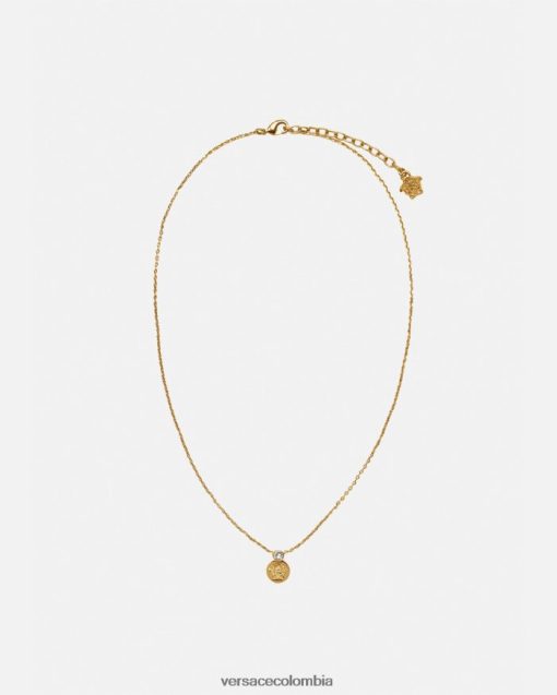 un collar de cadena fina con una gota de cristal y un dije de medusa grabado. Todos los productos de joyería de Versace no contienen plomo ni níquel. Todos los materiales son hipoalergénicos.