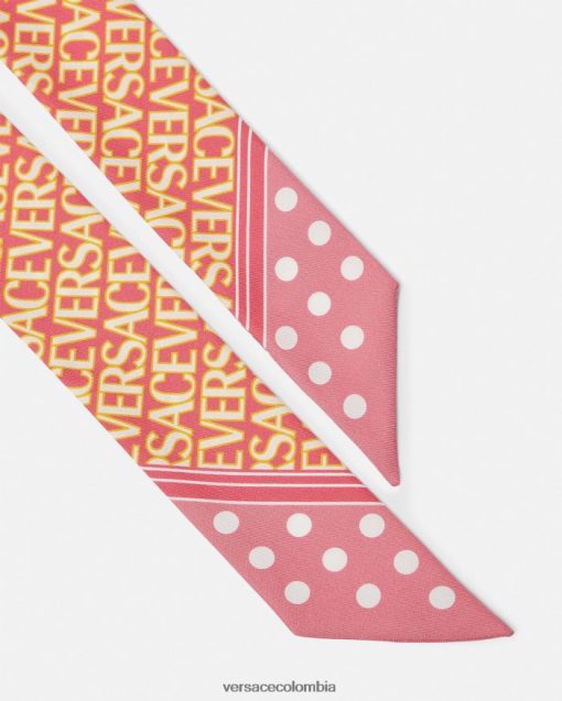 una bufanda-corbata de sarga de seda con un estampado de lunares de Versace y una versión elevada del patrón del logotipo con letras delineadas.