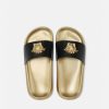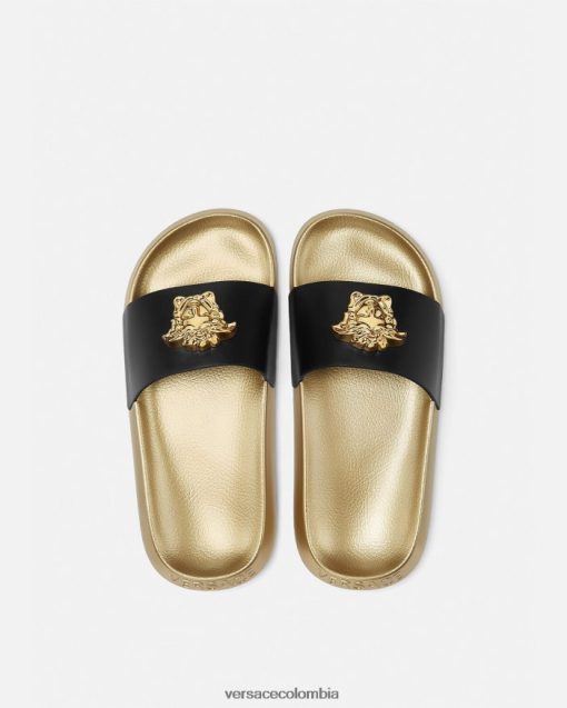 Estas sandalias están adornadas con una placa tridimensional de la Medusa y el logotipo de Versace en el talón.