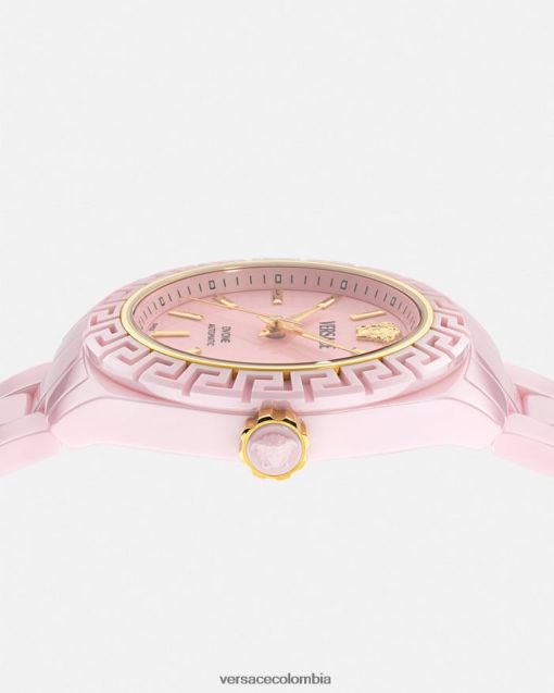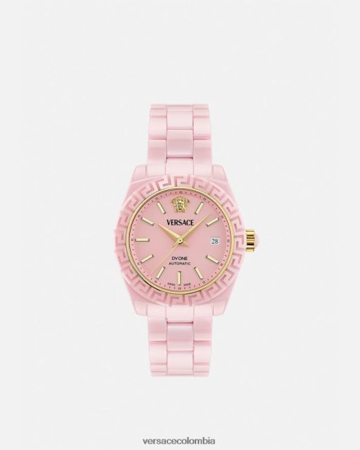 - esfera: esfera de esmalte rosa con logotipo de versace y medusa a las 12 h; inscripción “dv one” a las 6h