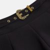 Esta falda plisada, que realmente canaliza el sentimiento de juventud rebelde de Versace Jeans Couture, presenta un detalle de cinturón decorativo con la hebilla I de alta costura barroca.