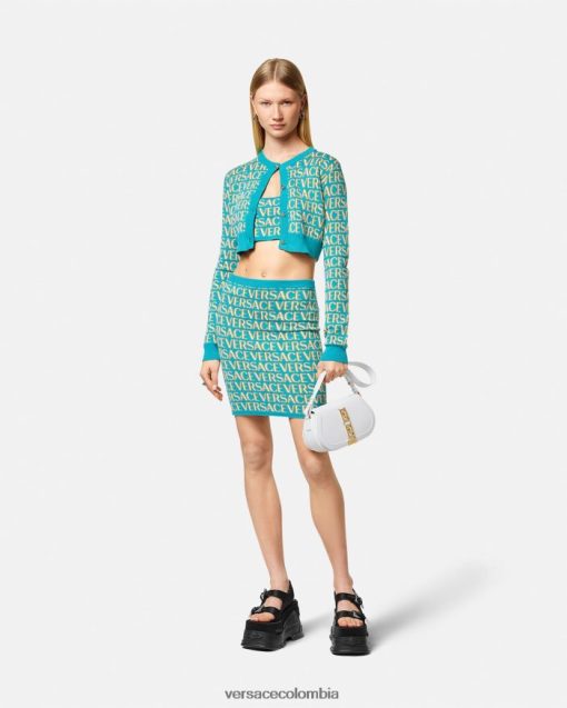 una falda de punto con un estampado integral de jacquard versace con letras delineadas y ribetes acanalados.