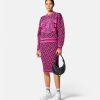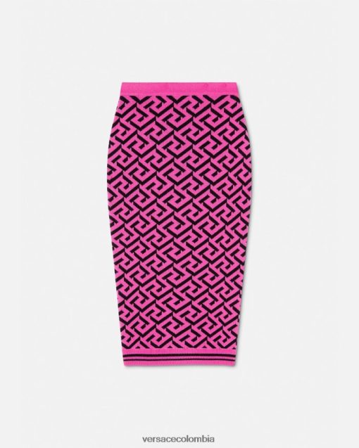 Esta falda de tubo midi, confeccionada en una mezcla de lana, presenta un patrón de La Greca en jacquard y un acabado con ribetes acanalados.